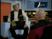 On the other hand, it kills a really great episode, Relics. That, of course, is the one with Scotty. You can’t not love an episode with a Dyson sphere, plus Scotty, plus a look at the old Enterprise bridge, plus “It’s green!” plus Picard knowing exactly what it is (Aldebaran whiskey). It’s easily in my top ten favorites.