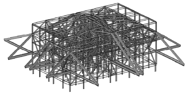 The structure provided by the framework is rigid and supports its own weight as well as the weight of the concrete floors and everything else in the building. A consequence of this design is that it requires vertical beams at regular intervals. Large offices necessarily have vertical columns throughout.