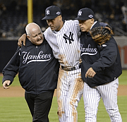 Then what looks like a bad turn for the Yankees goes tragic. Ace shortstop Derek Jeter fractures his ankle on a play and has to be assisted off the field. His ankle will take three months to heal, so he’s out for the rest of the season. No more playoffs and no possibility of a World Series.