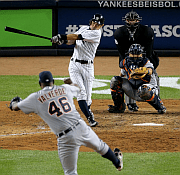Tiger pitcher Doug Fister keeps the Yankees scoreless through 6.1 innings, and both relief pitchers, Phil Coke and Joaquin Benoit, keep them scoreless for another 1.2 innings (6.1 + 1.2 makes eight innings; I’ll explain that another time, just trust me for now).