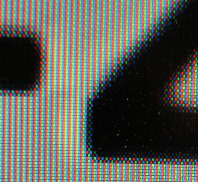 Speaking of managing to capture something colorful with my cheapo (but surprisingly good) digital camera, I managed to get a fairly good shot of the red, green and blue pixels on my LCD TV screen.