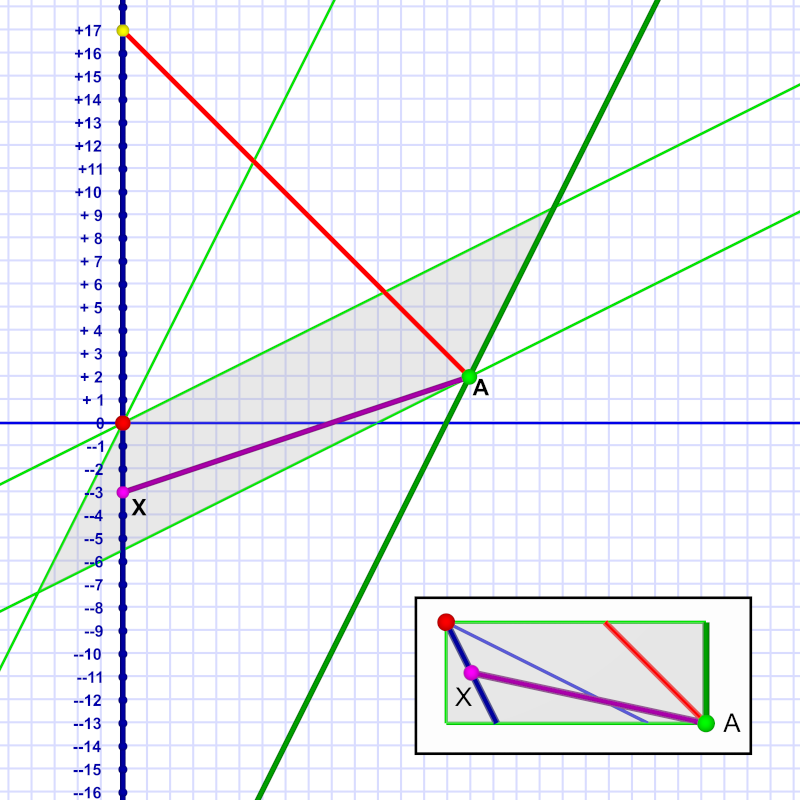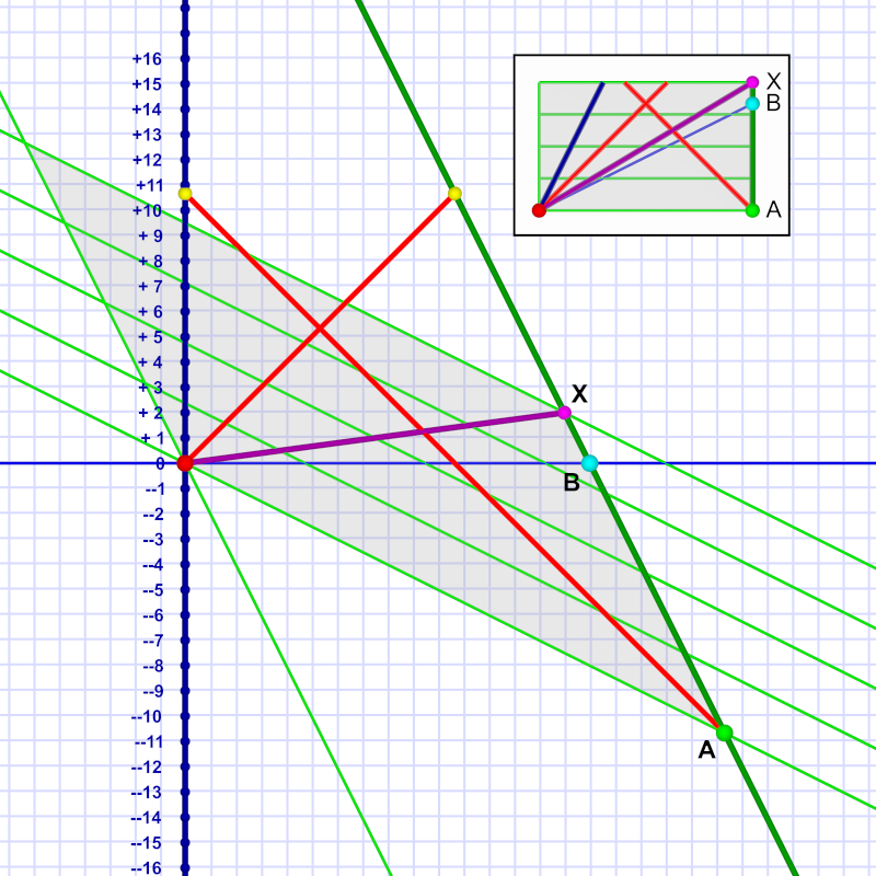 Since Em is in motion (relative to Al), her lines of simultaneity are canted into Al’s future. The gray rhombus shape marks out a slice of Em’s time that begins for her at event A and ends at event X.