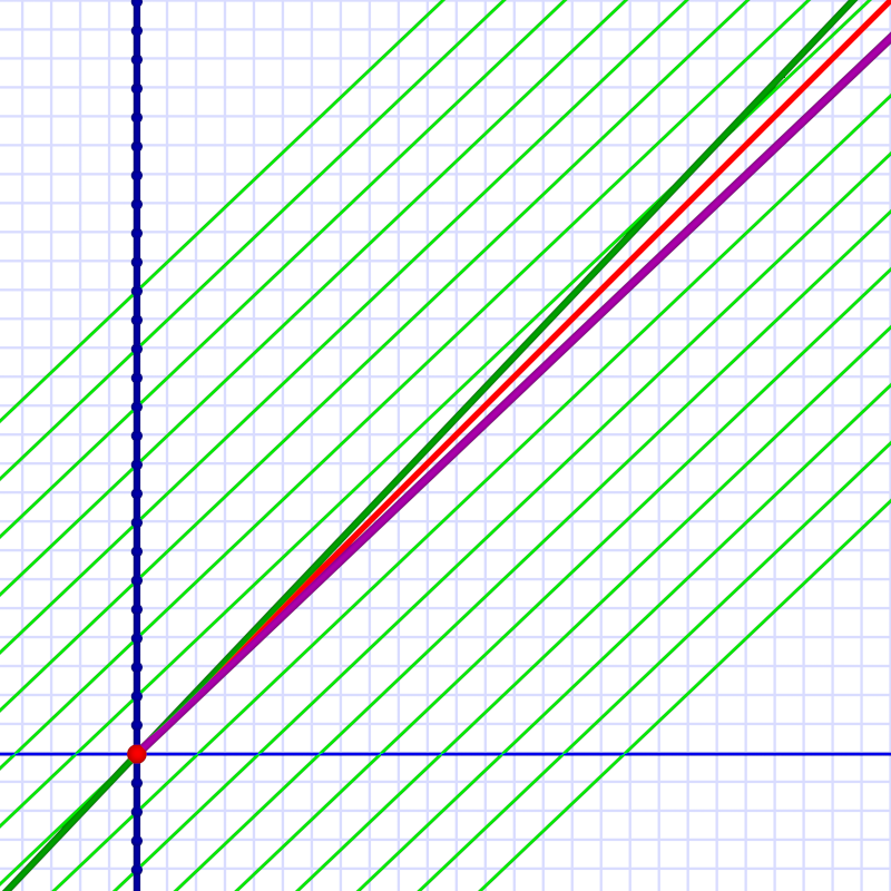 The purple line shows the “FTL” flight allowed given a potential frame of reference at 0.95 c, and as you can see, the angle is very close to the speed of light.