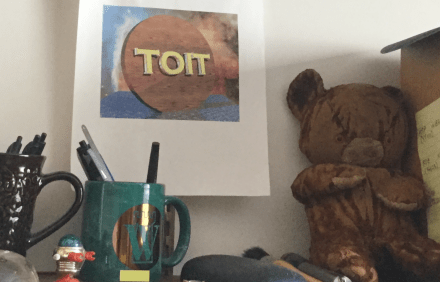 The teddy bear, my co-debugger, is from my 1950s toddler days!