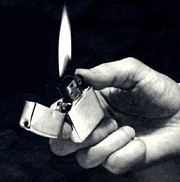 I’m referring to the icon of the hero (or villain) starting a conflagration of some kind by lighting a Zippo lighter and then tossing it away.