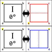 Note that either the red or blue square can be rotated in 90° steps to produce four elements (of which the red and blue squares are two). All four of such elements have reversed corner order.