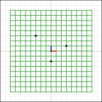 For example, diagram 1, our initial condition, features a 16×16 grid (green) superimposed on a 2D space.