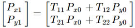 The short form: Given a transformation matrix, T, we transform point P0 to P1 by matrix multiplication:
