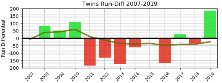 And while the Bummers may have gotten slightly more runs during the regular season, the Twins generated more runs, by quite a margin, than they have since 2007: