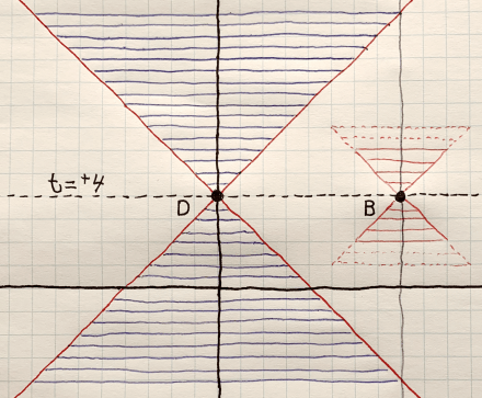 “Simultaneous” points D and B are outside each other’s light cones.