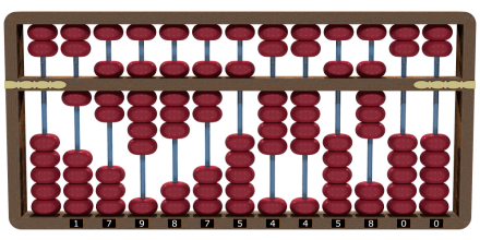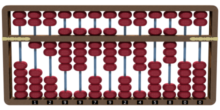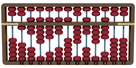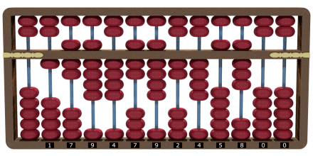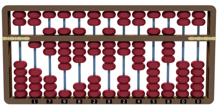 This also illustrates a property of abacus operation that doesn’t arise with addition. With pen and paper, we multiply right-to-left to make carrying easier. Because of the way an abacus works, multiplication has to work left-to-right.