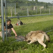 At one point, Moshe showed Wynne his scars from dealing with wolves. The older workers at Wolf Park can also show you their scars.