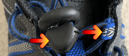 It also has a bad effect on the cord lock, since that’s one of the two spots the laces are fixed in place. That means the cord locks are fixed in place.
