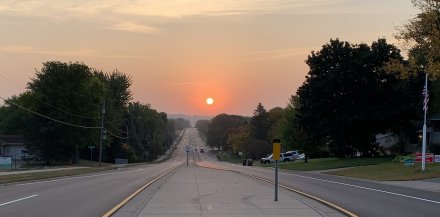 (My ideal was to capture it half-risen right at the end of the road. Ah, well.)
