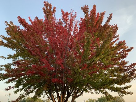 I’ve always been especially fascinated by how tree leaves turn — the patterns that form. You see what I mean in the tree above. A section of it has gone bright red while other parts of it are green. It won’t be long before the whole tree is bright red.