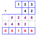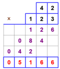 Figure 5 and Figure 6 in this post illustrate the method with the usual multiplication: 42×123.