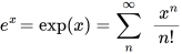 We write it as ex or as exp(x) — those are equivalent forms. The latter has a formal definition that allows for the complex numbers necessary in physics. That definition is of a series that converges on an answer of increasing accuracy.