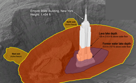 She’s quieted down for the moment. The water lake that used to be down in the crater flash evaporated very quickly when the lava hit it. Check out this graphic from the USGS: