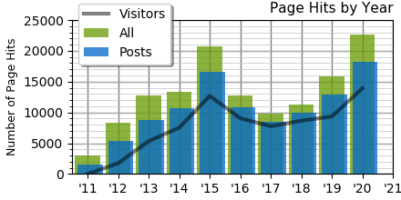 Hardly gang-busters but certainly more of everything this year. There were even some old posts that saw more traffic this year than in any previous. (I wonder if it has anything to do with people being stuck at home.)
