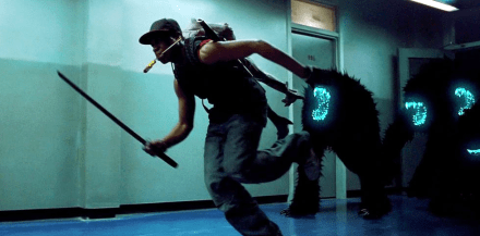 The males, with super-black fur, no eyes, and big glowing teeth, are much harder to kill and will stop at nothing to find the female (which is stashed in the most secure place they know — the weed growing room — which naturally is sealed against scents getting out). But the female’s scent is all over the youths, so the males are attacking them.