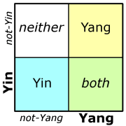 For the same reasons, Yin-Yang also makes a bad four-square diagram. (Which are functionally identical to Venn diagrams but make explicit the “neither” set. This makes them even worse for depicting Yin-Yang.)