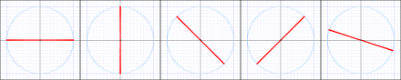 Figure 2. Linear polarization states of a light wave. The first two are typically called horizontal and vertical, respectively. The other three can be viewed as superpositions of the first two.