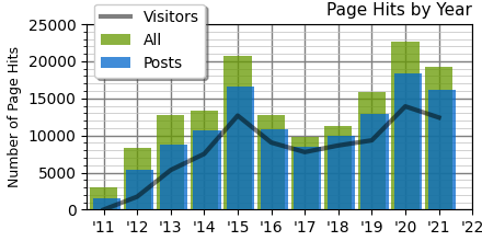 Traffic was down in all regards compared to 2020. I’ve never made any attempt to publicize this blog. I don’t even have accounts on Twitter or Facebook (never had the former, deleted the latter many years ago).