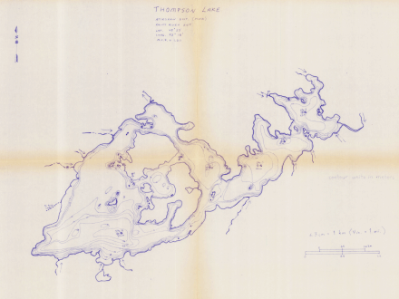 Because Thompson is so obscure, there aren’t any convenient, let alone recent, depth maps. For example, “Scott” has a GPS app he bought that has detailed topographical maps that include most lakebeds. Most lakebeds. Not Thompson, though (or any of its nearby lakes).