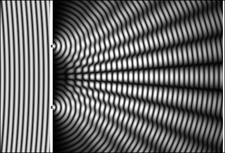 The first shows the effect of changing the distance between the slits (while keeping the frequency constant): Distance [animated GIF, 440×300 pixels, 2.28 MB]