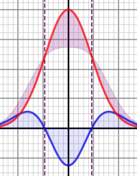 Figure 6. The point of this post! The purple shading on the red curve shows the effect on it of the 2nd derivative (blue curve).