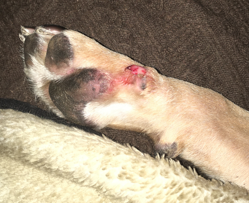 Bentley had a follow-up vet visit Wednesday (coincidentally the same day I had a doc visit), and she’s apparently out of the woods. Don’t know if the dewclaw will grow back, it’s just a red nub now.