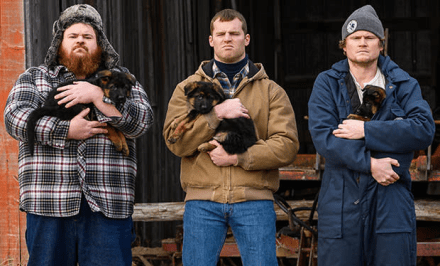 Gotta love a show that loves dogs! Squirrelly Dan, Jared, and Daryl (left to right), each with an adorable puppy.