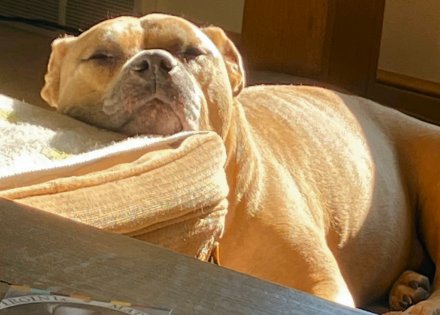 As with most short-muzzle dogs, her breathing apparatus isn’t ideal, she could never be a long-distance runner (like Dalmatians or Beagles). I suspect she breathes better with her snout elevated like that. (Or maybe she’s just looking down her nose at the world. A definite possibility.) I’ve seen her do something similar: