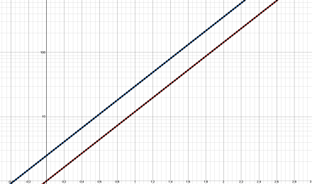 Something else becomes apparent in Figure 4b. The blue curve is straight, but the red curve now appears to bend towards the blue line. Which suggests it will cross it again at some point, but this time headed downwards.