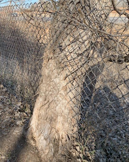 There are some nice paths that run alongside our local freeway. A chain-link fence protects the freeway. I’ve noticed how trees grow through the fence and recently saw an amazing example of that: