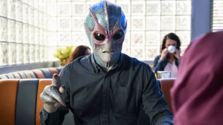 Lastly, Resident Alien seems to take seriously the idea of UFOs. The last episode of season two opens with a monologue by Mike Richardson, an executive producer on this show and CEO of Dark Horse Comics (which published the comic). He relates seeing a UFO as a kid. The episode is interrupted a number of times for what seem real interviews with people claiming to have seen UFOs. But one of those is character Deputy Liv Baker, who in the show saw a UFO as a kid, so it’s hard to tell if these are meant seriously or not.