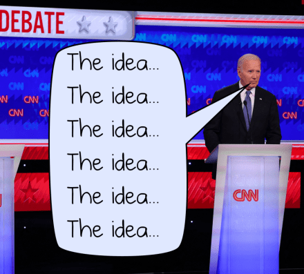 I was struck by Biden’s overly frequent use of the phrase, “The idea that…” when referring to the stream of utter BS from the other guy.