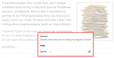 It has been another slow month here, and I remain conflicted about trying to blog both here on WordPress and now, on Substack. Last May I committed to posting on my WP programming blog (The Hard-Core Coder) every two weeks.