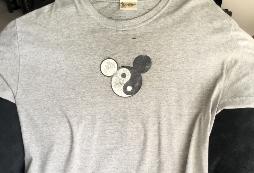 While I was married, we vacationed at Disney World several times (it’s almost weird how many times I’ve been to Florida). The shirt wore out, but I still have the Mickey Mouse Yin-Yang pin from Disney (and a ton of other pins — got mildly into it).