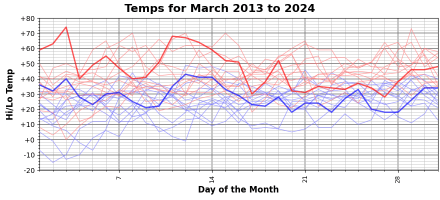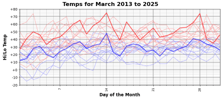I like to play with weather data and make charts. The last two Marches here have been warmer than average.
