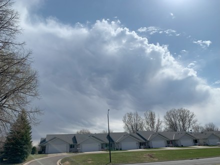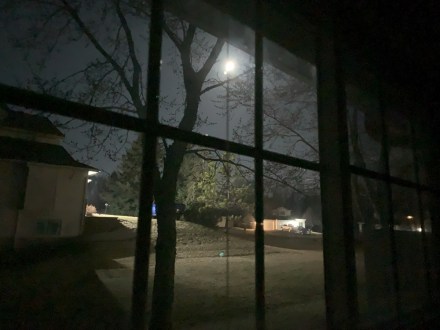 From April 12 (at 3:10 AM) when the full Moon shone into my sleeping eyes and woke me up. The view is what I saw (and the snow is long gone).