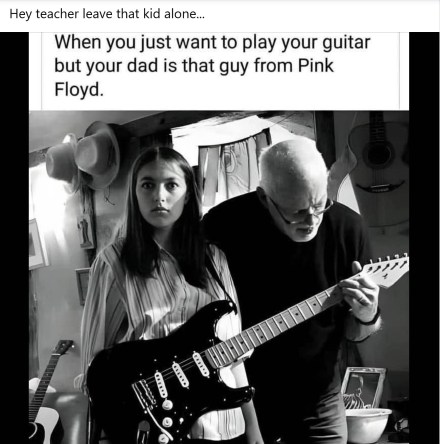 I think Gilmour’s daughter is wearing his famous black Strat.