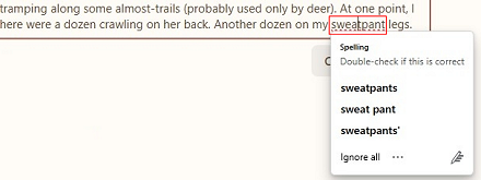 Interestingly, in the above paragraph, it red-jagged “barganed” but now it offers “bargained” as the (one and only) suggestion.