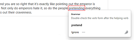 I’m sure I recall it being more aware that text inside double quotes is special and can be outside typical grammatical flow (as of this editing session, it’s now recommending “i is” (yes, lowercase “i”), and what kind of faith can you have in a grammarian that thinks a lowercase “i” is grammatic?