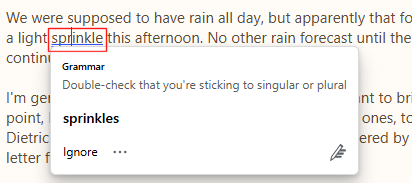Again, it’s hard to understand why it gets seemingly simple constructs so wrong. A lot of its apparent confusion seems to involve singular versus plural cases. But “a light sprinkles this afternoon” is another glaring mistake.