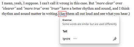 Maybe this is on me; maybe I lack proficiency with English grammar. That’s always possible. I certainly have no pretension of being a grammarian, but I like to believe I have some grasp of it. In any event, lately I’ve found myself bemused by the Microsoft grammarian embedded in Windows™.