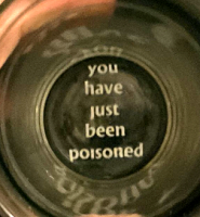 There is an episode of The Prisoner (1967-1968), “The Girl Who was Death”, where the protagonist (Patrick McGoohan) drinks a glass of beer and sees on the bottom the words: “You have just been poisoned”.