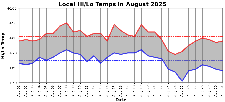 Compared to previous years, August lacked the highs we typically see. That cool spell definitely stands out as a bit unusual.
