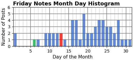 Today’s Friday Notes post is a small first — I’ve never published one on the sixth of the month (until today). A bit more significantly, this one is early in the month. I’ve discovered a strong bias towards publishing these posts in the latter half of the month: only 14 posts before the 16th of the month; 44 after (very close to exactly a 25/75 split).
