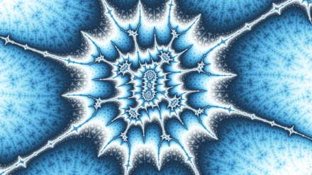 But it’s one of my favorite images because it uses a slightly different coloring algorithm, one called Circular Orbit traps. That’s what creates those ghostly sphere shapes hovering in the background. I really like the combination of those ghost spheres and the lightning-strike coloring of the tendril.